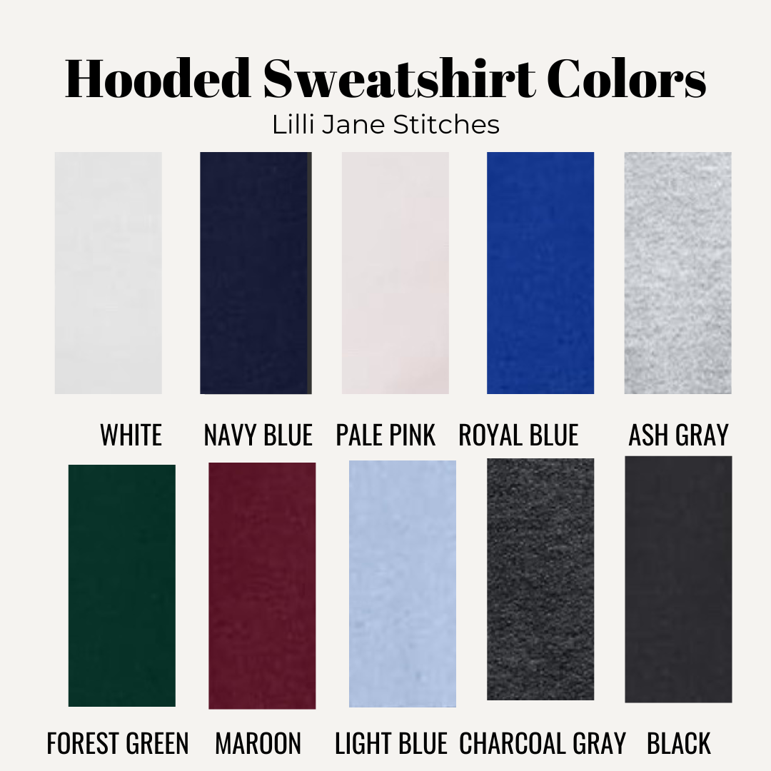 Sweatshirts will be Hanes brand, unisex with drawstring hood.